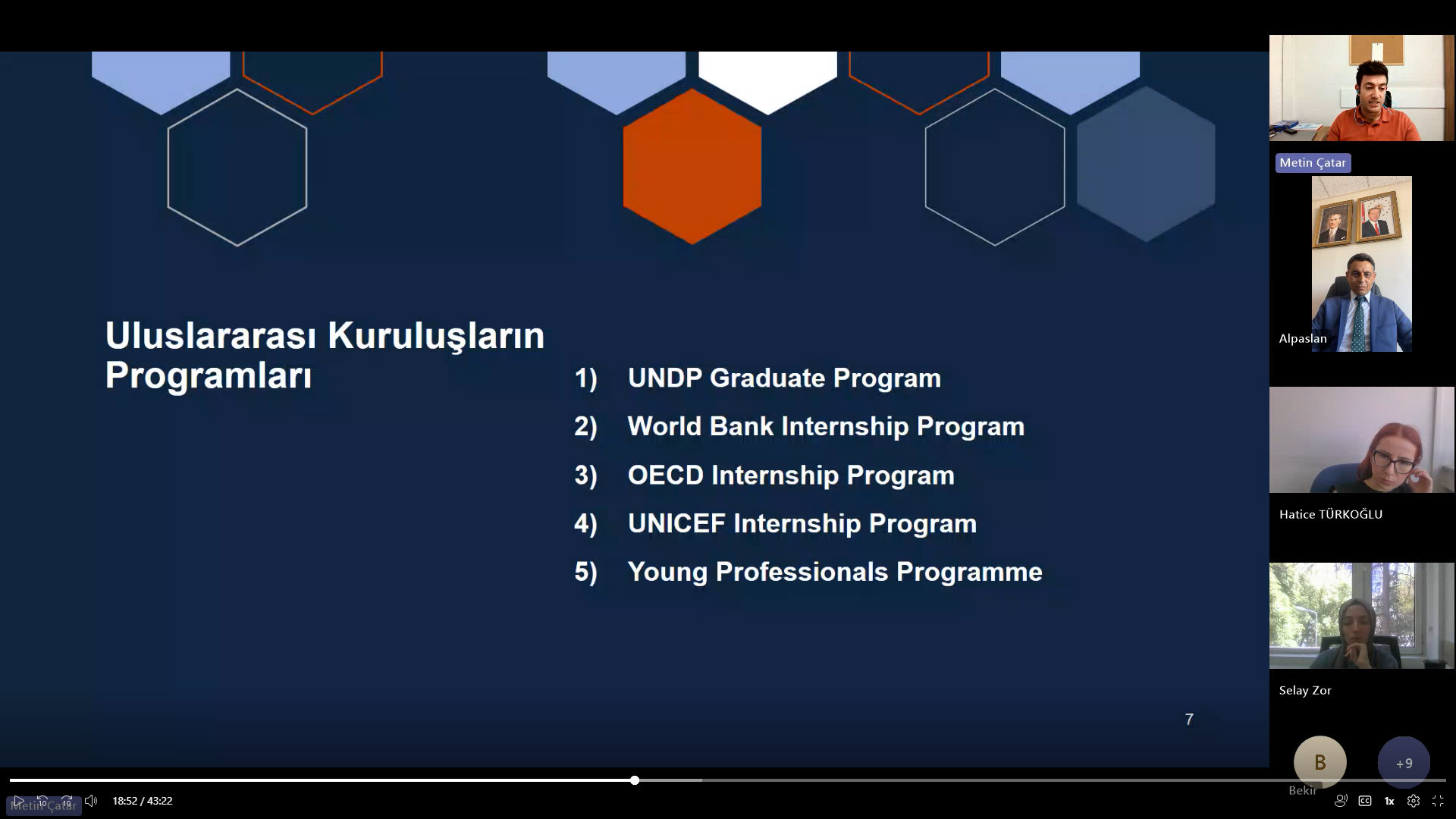 Toplantının ana konuşmacısı olarak Avrupa Birliği ve Dış İlişkiler Genel Müdürlüğü’nde görev yapan Metin ÇATAR, yurtdışı burs olanakları, uluslararası iş birlikleri ve temsilcilikler üzerinden açılan programlar hakkında katılımcılarla bilgi ve tecrübelerini paylaştı.