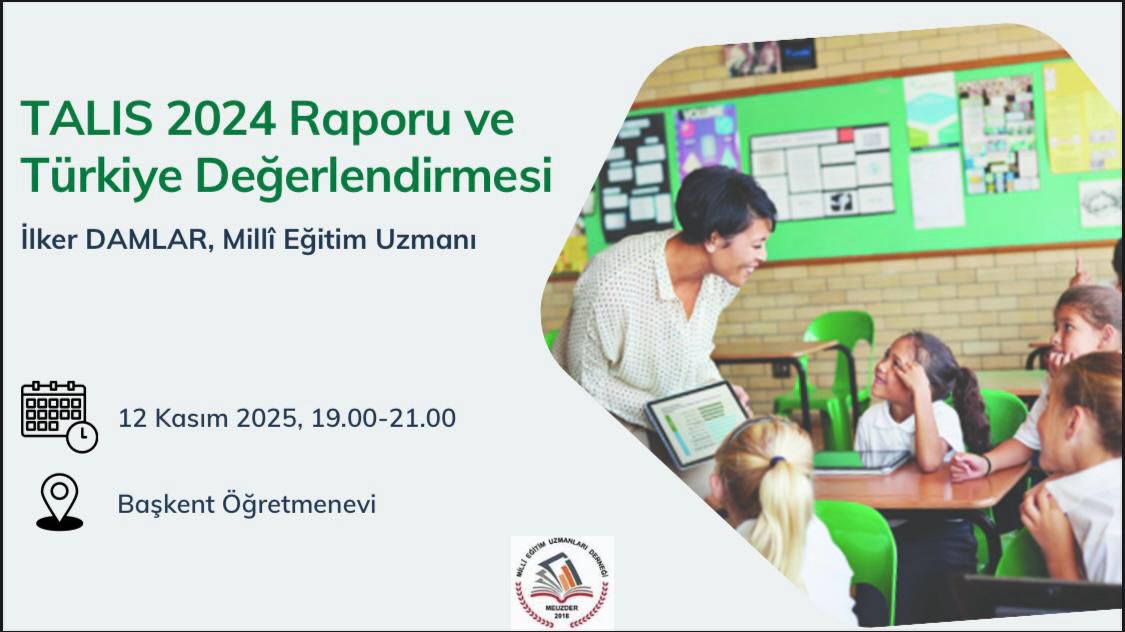 MEUZDER Akademi kapsamında, Millî Eğitim Akademisi Başkanlığı’ndan Millî Eğitim Uzmanı Sayın İlker DAMLAR tarafından 12.11.2025 tarihinde Millî Eğitim Uzmanları ve Uzman Yardımcılarına yönelik “TALIS 2024 Raporu ve Türkiye Değerlendirmesi” başlıklı kapsamlı bir sunum gerçekleştirildi.