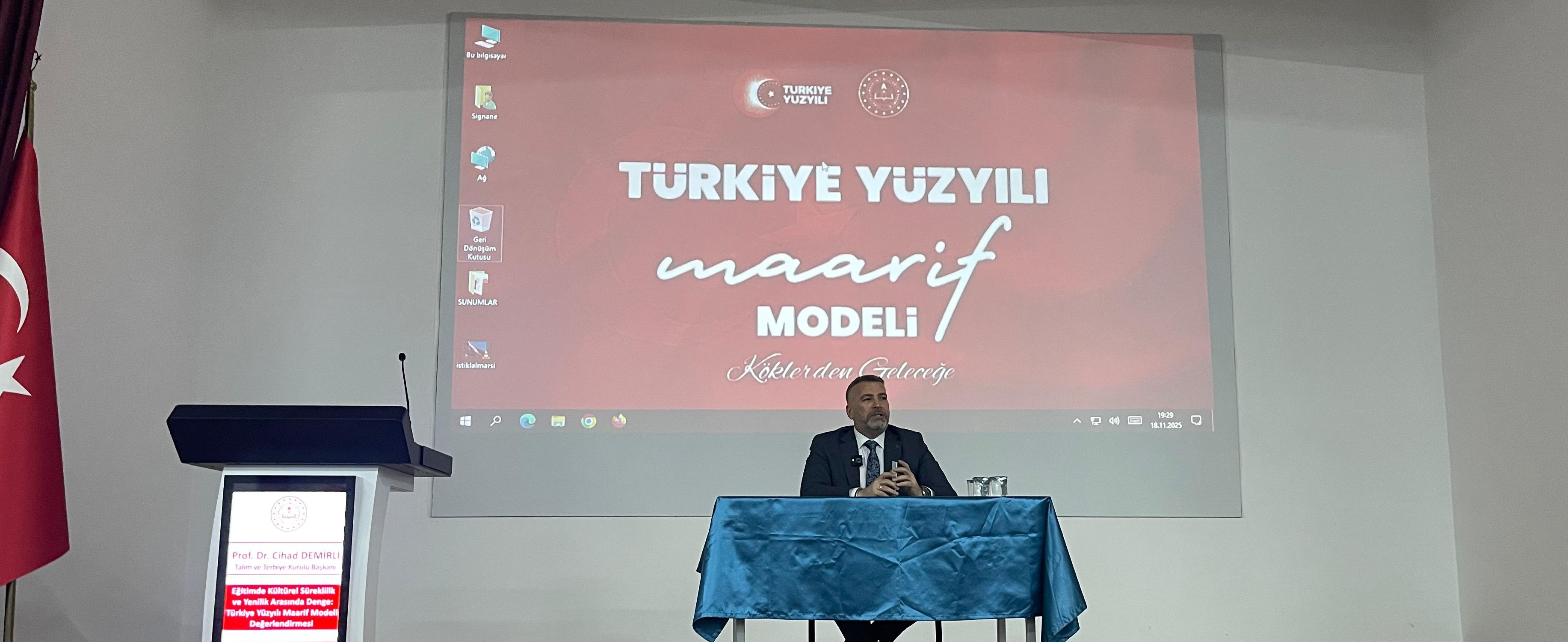 Şöyleşide, alanın önde gelen isimlerinden biri olan Talim ve Terbiye Kurulu Başkanı Sayın Prof. Dr. Cihad DEMİRLİ, Türkiye Yüzyılı Maarif Modeli’ni kültürel süreklilik ve yenilik dengesi açısından ele alarak değerlendirmelerde bulundu ve farklı bakış açılarını katılımcılarla paylaştı.